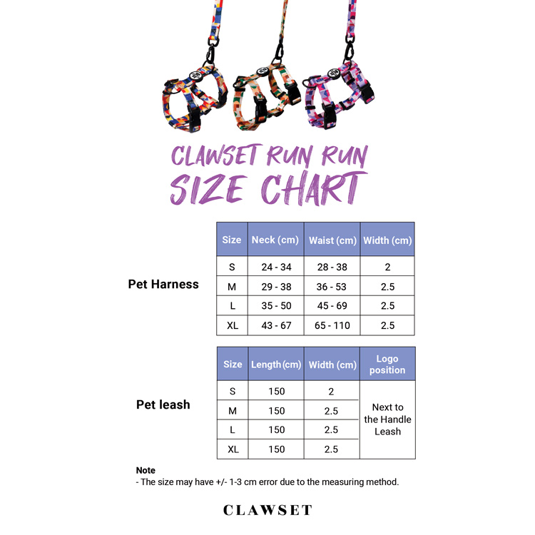 Pet Harness size (see picture) :