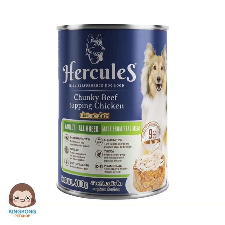 Hercules, Dog Wet Food Chunky Beef topping Chicken 400g