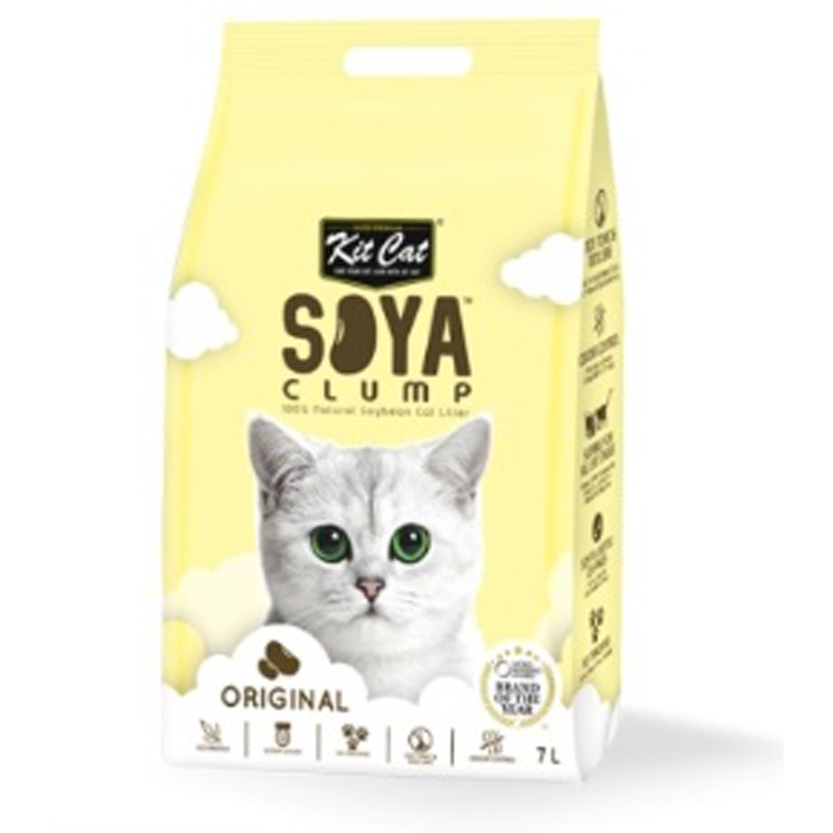 Cat Litter with soybeans as the main component. 100% Biodegradable with a soft scent. Made from residual soybeans from soy milk manufacturing. Normally, the material would be wasted and discarded but instead, Kit Cat has transformed this matter into eco-friendly kitty litter! Superior performance, with over 3 times extra absorbance power, compared to normal and crystal type litters. Instantly transform into clumps after contact with any liquid. Lightweight, easy maintenance, and can be flushed in the toilet. No ammonia or urine scents with a clean litter box. Safe for owners and cats.Â